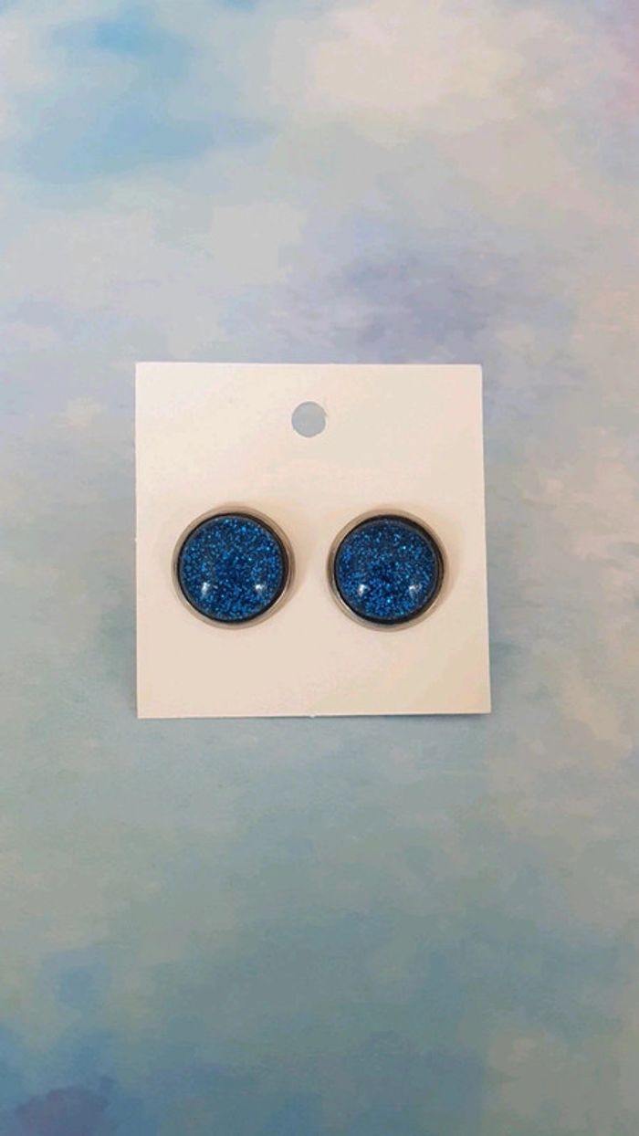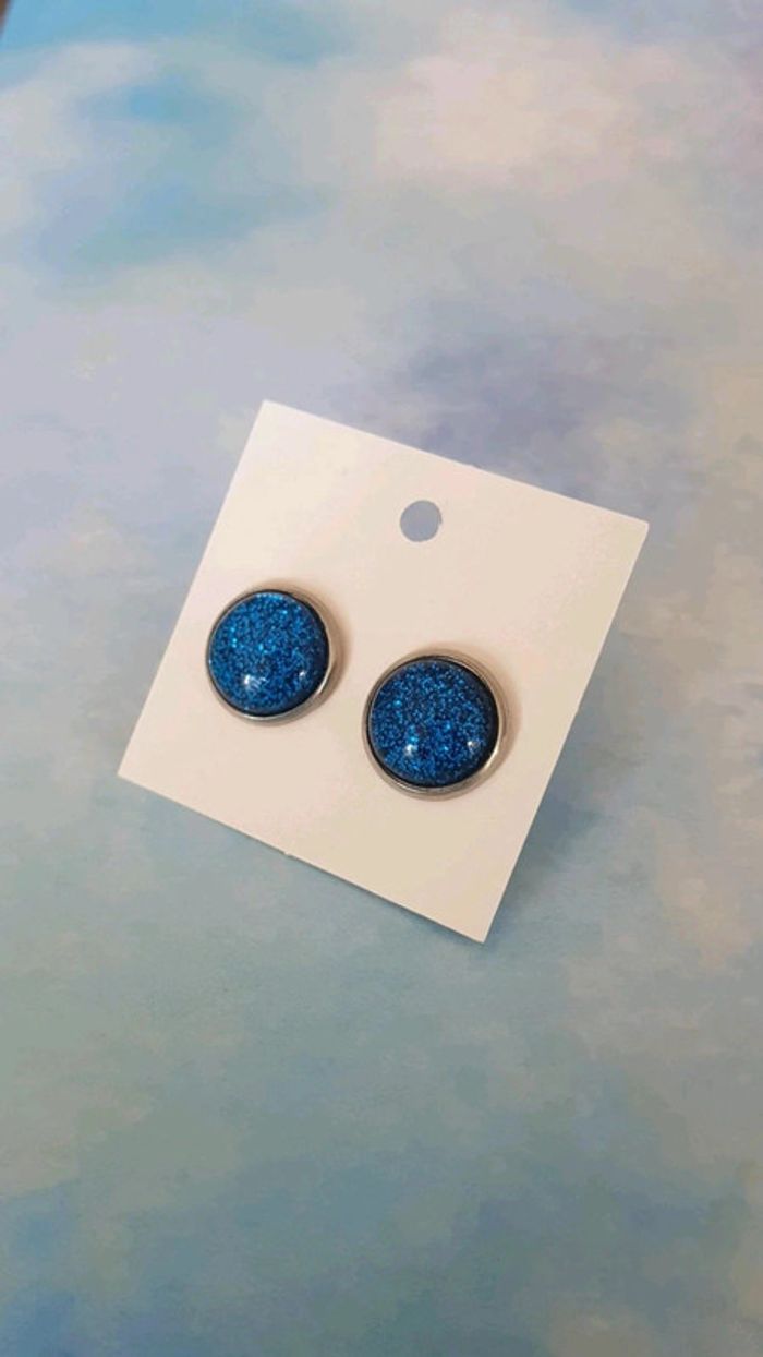 Boucles d'oreilles strass paillette bleu acier inoxydable - photo numéro 1