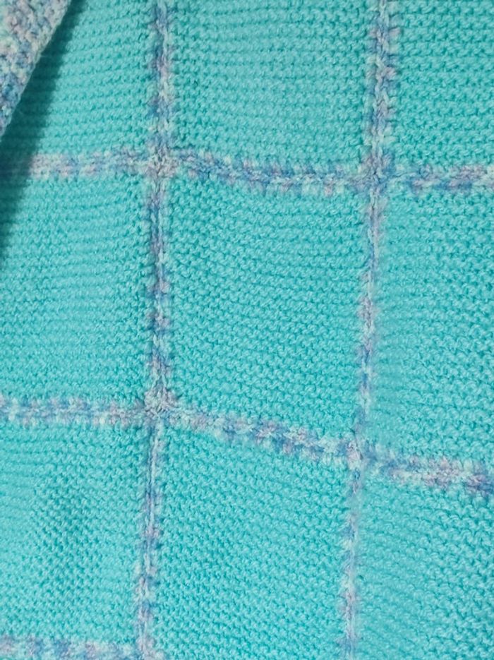 Couverture tricoté carreaux turquoise lila - 85x75 cm - photo numéro 1
