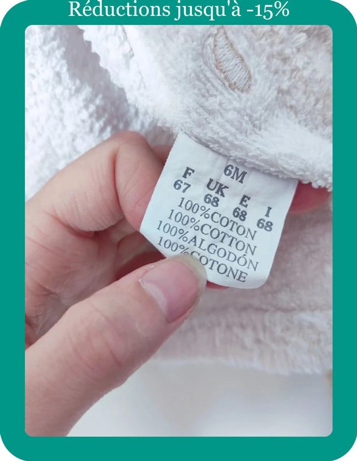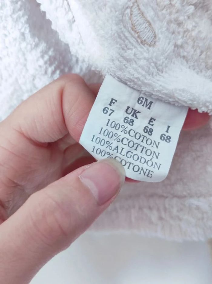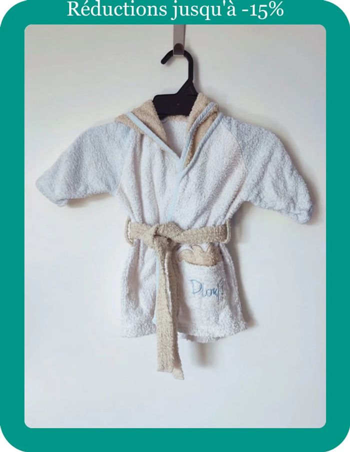 💸 Réduction sur les Lots 💸 🌱 2 articles : -5% ☘️ 3 articles : -10% 🍀 5 articles : - 15% 🌿 10 articles : Réduction supplémentaire  ⁠෴﹏෴﹏෴﹏෴﹏ ⁠෴﹏෴ 🗂️ Catégorie : #flocobebe 📏 Taille : 6 mois / 67cm 🏷️ Marque : Non mentionnée 🎨 Coloris : Blanc, beige, bleu, bleu pastel 🏁 Thème / Motif : Uni, canar, plouf 🧵 Composition : 100% Coton 🌍 Pays de Fabrication : Non mentionné ❌ Défaut(s) : Légères tâches sur la ceinture 📜 Détails supplémentaires : Un peignoir avec ceinture et capuche. Manches longues ෴﹏෴﹏෴﹏෴﹏ ⁠෴﹏෴ 🛍️ Articles Client : #carolebru