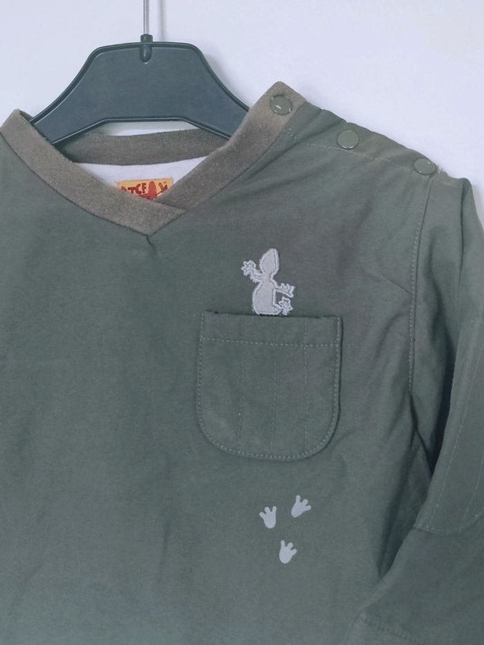 Un sweat épais car effet 2 en 1 avec tee-shirt intégré Petite décoration avec un reptile et ses empreintes #flocobebe #carolebru