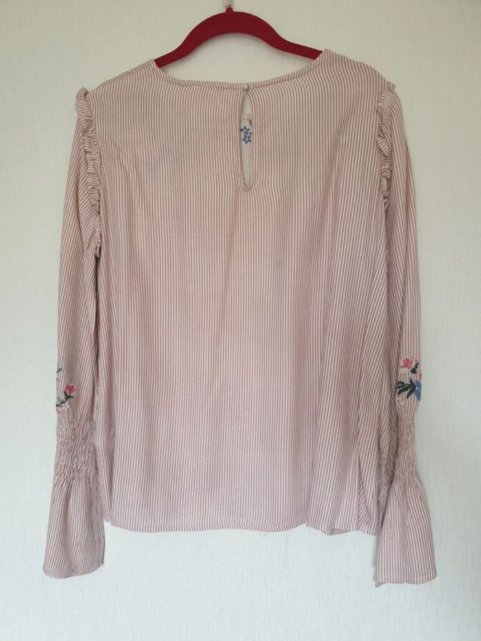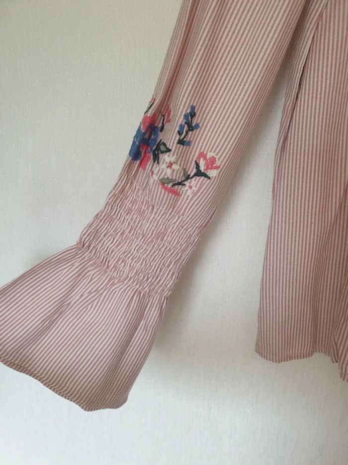 Blouse rayée rose et blanc fleurs brodées Jennyfer S - photo numéro 5