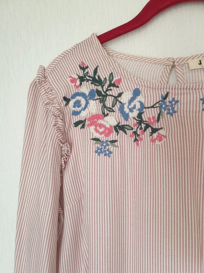 Blouse rayée rose et blanc fleurs brodées Jennyfer S - photo numéro 2
