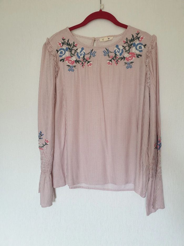 Blouse rayée rose et blanc fleurs brodées Jennyfer S - photo numéro 1