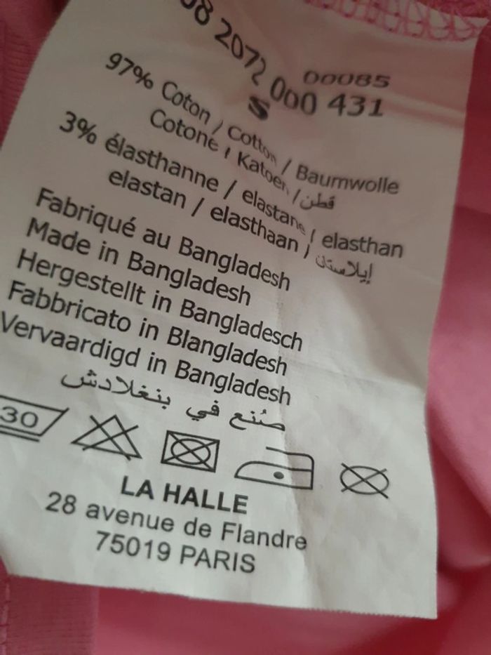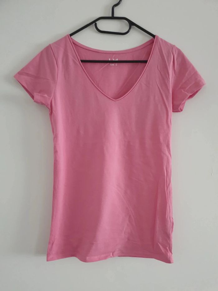 Tee shirt rose uni, col V La halle, taille S Coton et élasthanne Peu porté Aisselle : 37 cm #pauliiiinefemme36