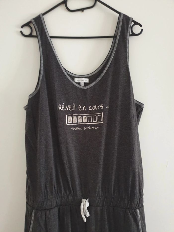 Combinaison pyjama, sans manches, élastiquée a la taille, poches sur le côté Liberto, taille L Coton et polyester Porté quelques fois Aisselle : 54 cm Taille : 42 cm Entrejambe : 72 cm Longueur : 157 cm #pauliiiinefemme40 #pauliiiinefemme42
