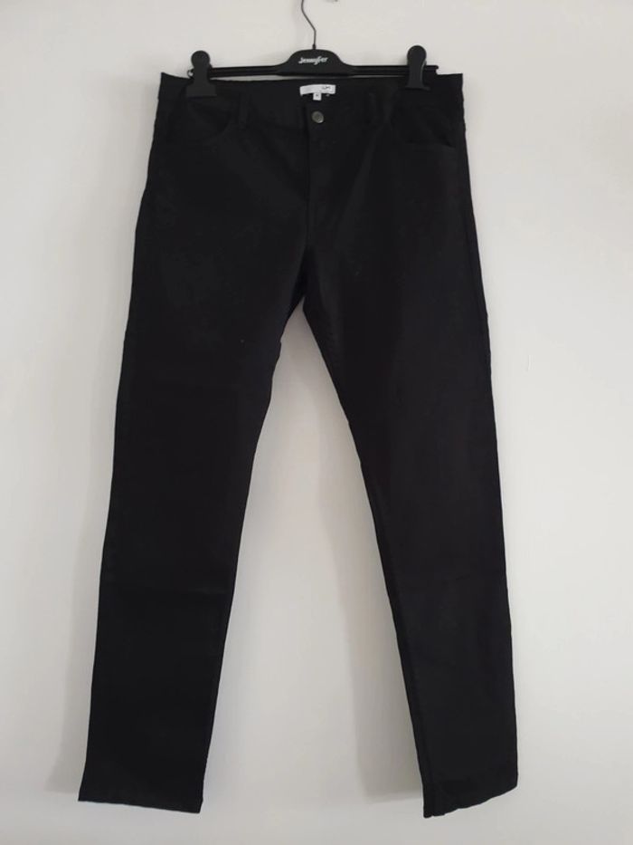 Jean skinny noir, braguette à zip, poches devant et derrière Lahalle, taille 42 Coton, polyester et élasthanne Taille a plat : 43 cm Entrejambe : 77 cm Longueur : 100 cm Bas de la jambe : 16 cm #pauliiiinefemme42