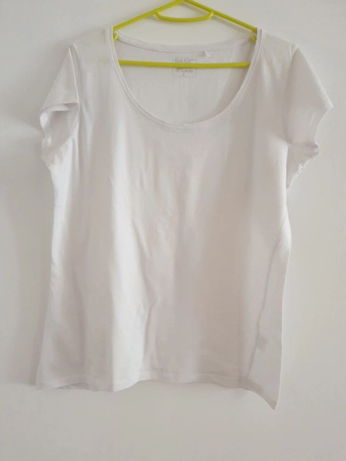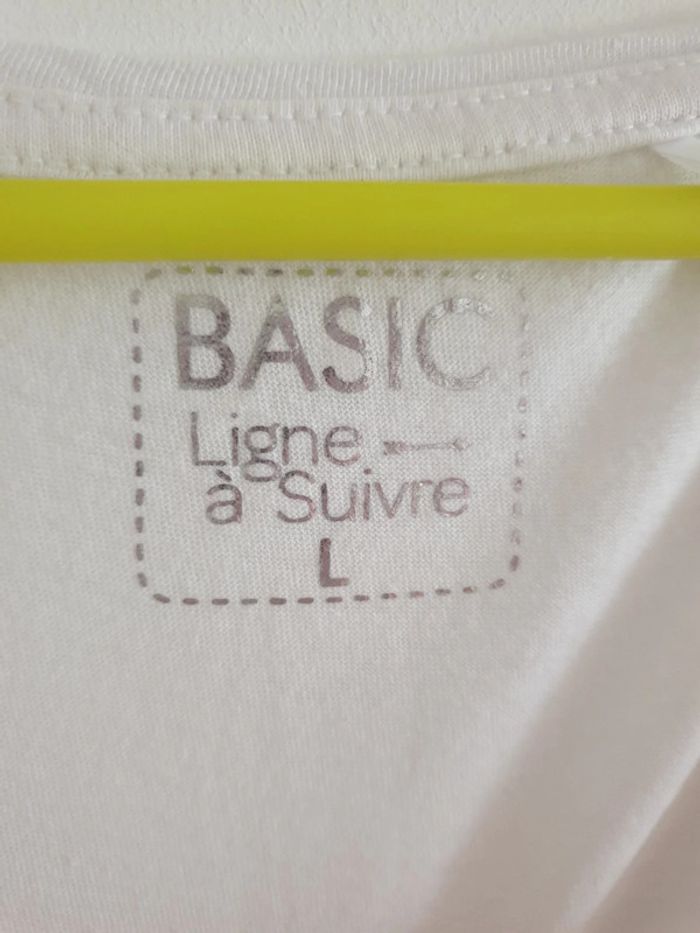 Tee shirt blanc uni basic, légèrement transparent, près du corps Ligne a suivre, taille L 100% coton Peu porté Aisselle : 50 cm #pauliiiinefemme40