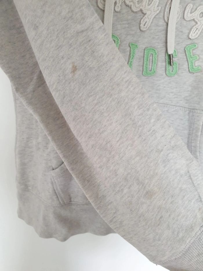 Sweat à capuche gris, écriture devant H&M, taille M Coton Porté A noter : tachée au niveau du bras (voir photos) 🎁 cadeau possible pour tout achat #pauliiiinefemme38 #pauliiiinecadeau