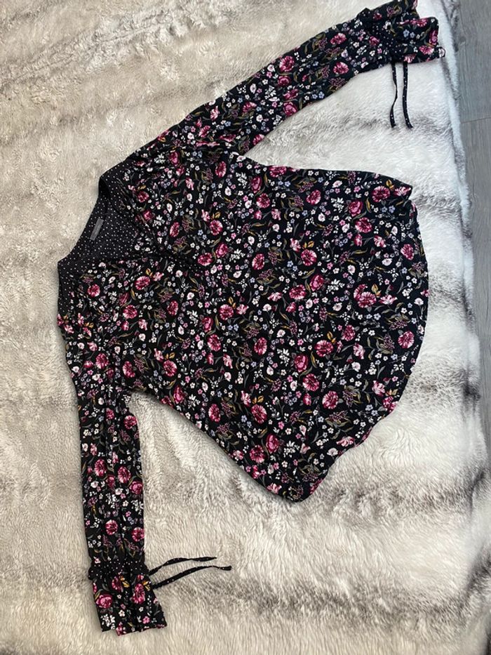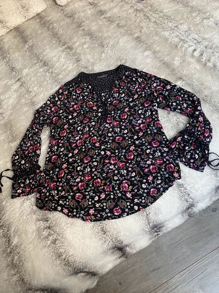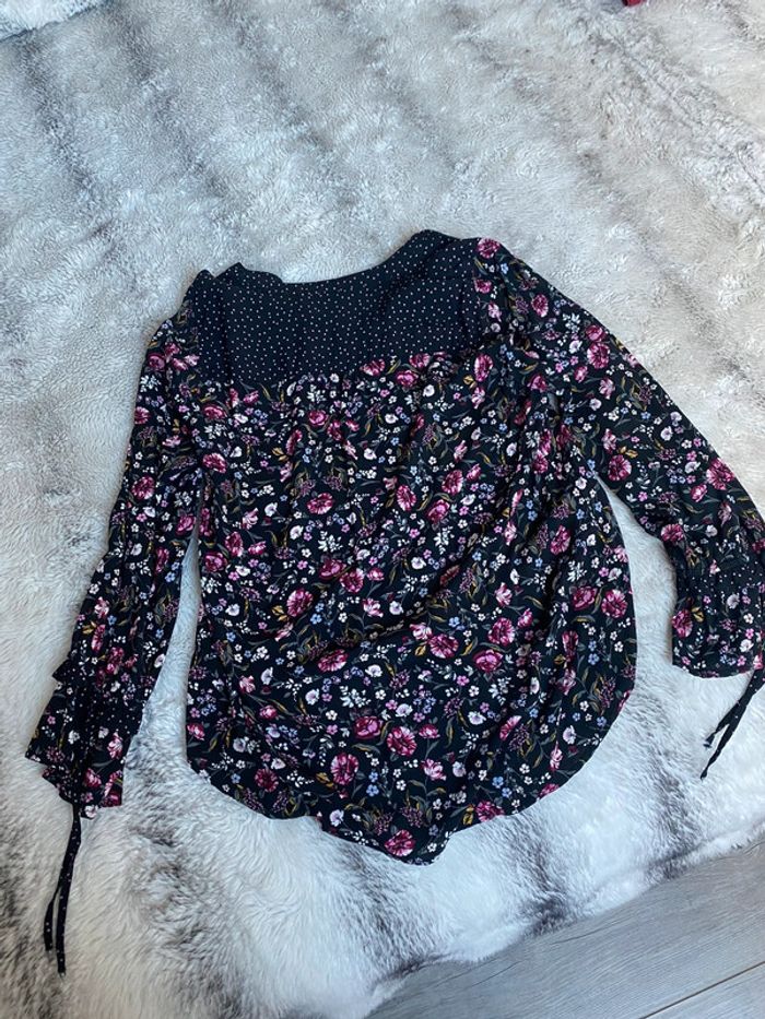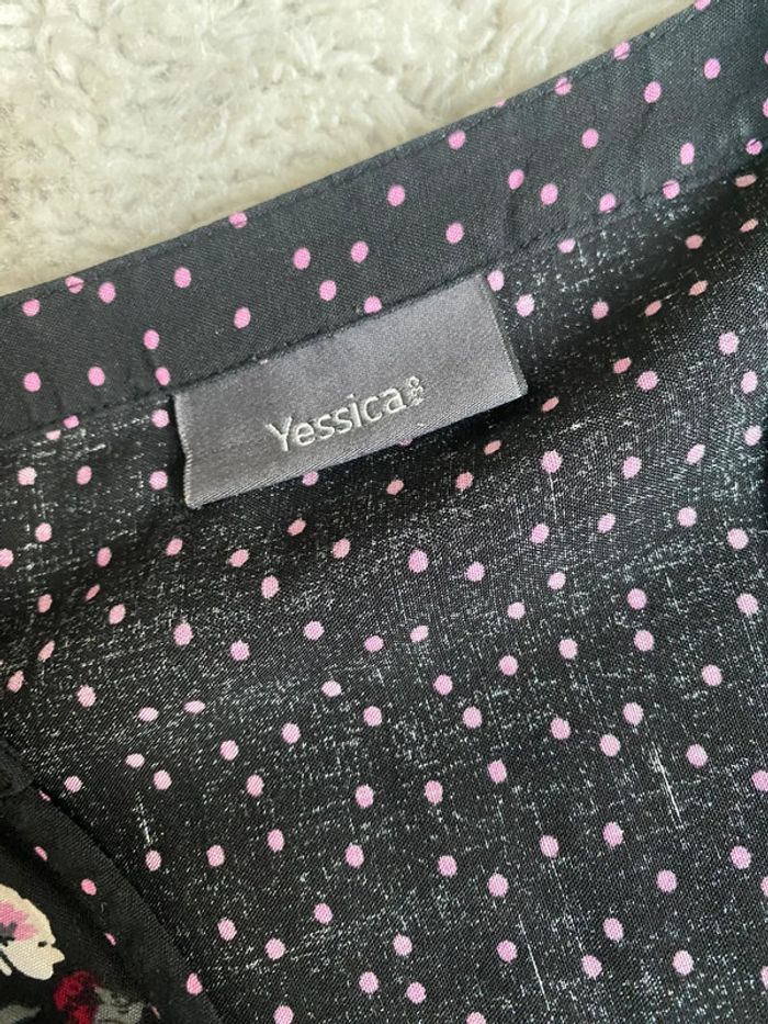 Joli chemisier fleuri Marque Yessica Taille42 Tb état #chemisiernoirfleuri #chemisier42
