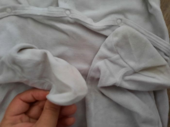 Defaut 1 tache verte et semelle pieds un peu tâcher, à voir si cela part avec du détachant Chaud pour l'hiver