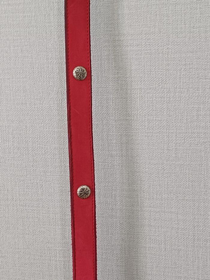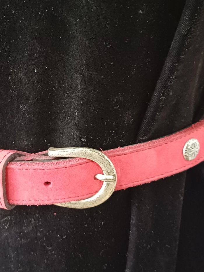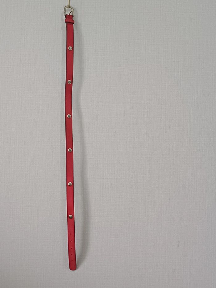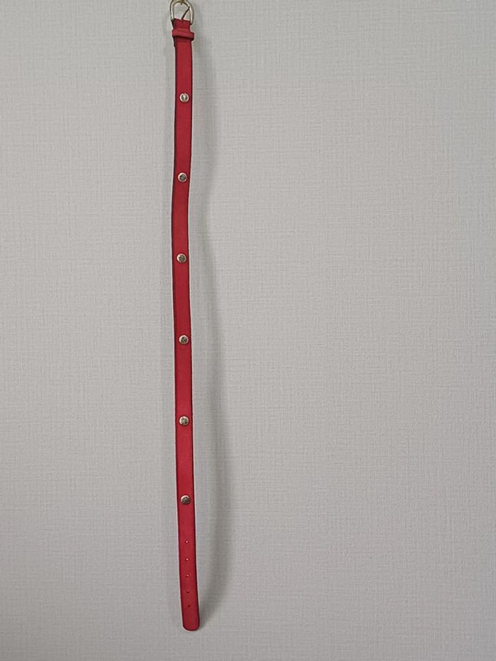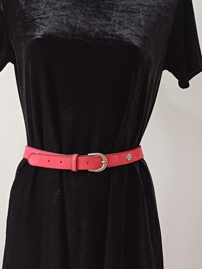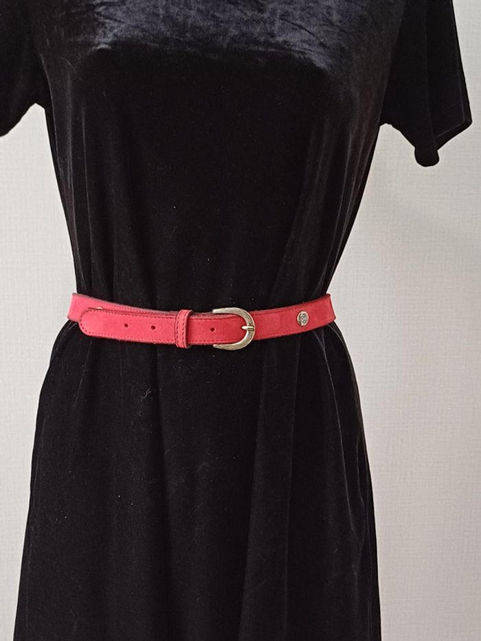 Ceinture rouge en cuir doublure nubuck incrustation argentée la boucle à quelques traces usures Longueur 89 Largeur 2.5