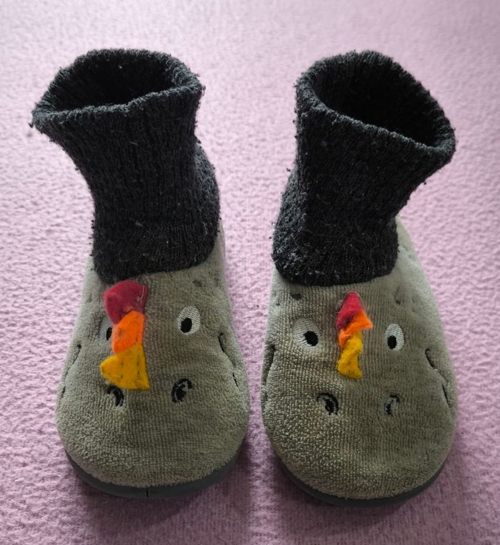 Chausson hiver à enfiler Taille 23 Petite usure de la semelle mais peuvent toujours servir.