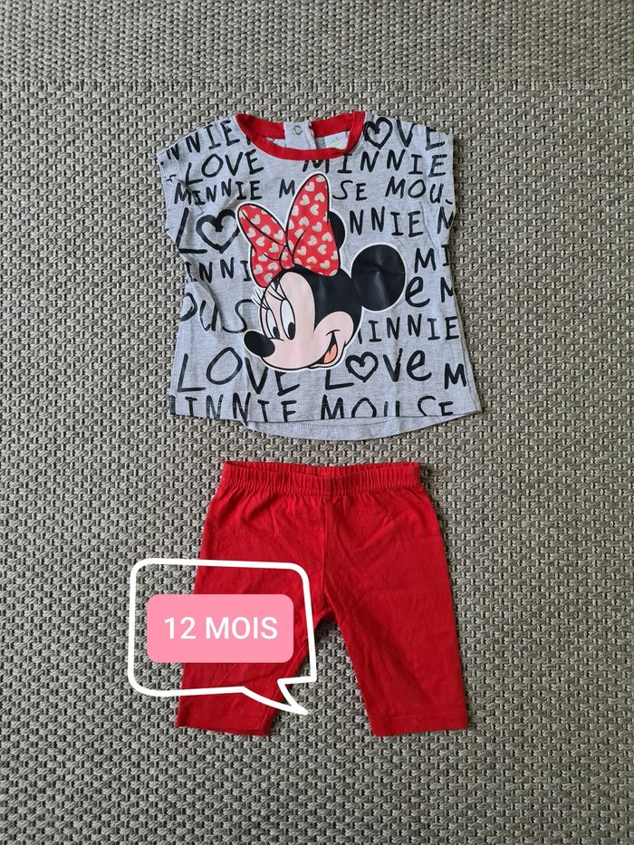 Ensemble t-shirt + short "minnie" - 12 mois - photo numéro 1