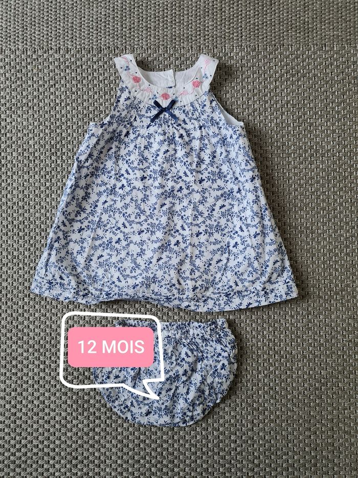 Robe et sa culotte assortir "papillons" en excellent état. Boutons à enfiler dans le dos. Doublée mais légère elle est Idéale pour l'été. Taille 12 mois - 74cm - marque sergent major Envoi Rapide et Soigné. J'applique une réduction si vous prenez plusieurs articles de mon dressing