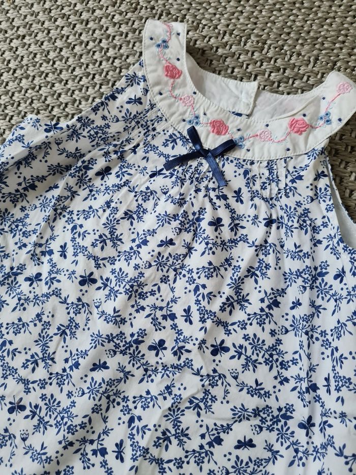 Robe "papillons" bleu/blanche et sa culotte - 12 mois - photo numéro 2