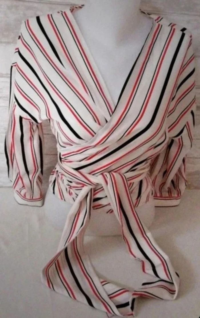 Chemisier cache cœur a nouer à la taille, manches trois quart. En très bon état, pas de trou ni tâches. Envoi rapide et soigné. D'autres vêtements femmes en vente #isacorbasfemme