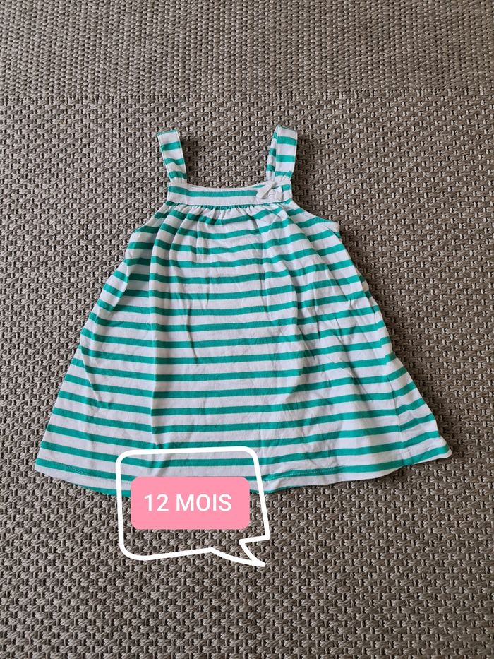 Robe bretelle rayée verte/blanche - 12 mois - photo numéro 1