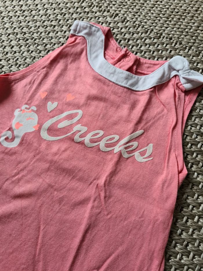 Lot de 4 hauts manches courtes idéal pour l'été. Portés mais bon état. 1 défaut sur le t-shirt blanc. (Voir photo et descriptif) - t-shirt long sans manche blanc avec motifs verts avec une tâche sur le devant. (Voir photos) Boutons à pressions dans le dos. Marque grain de blé. - T-shirt rose motif "creeks" en excellent état. Boutons pressions dans le dos. Marque creeks. - 2 t-shirts motif "best girl" en excellent état. Boutons pressions dans le dos. Idéal pour l'été. marque kookai Envoi Rapide et Soigné.