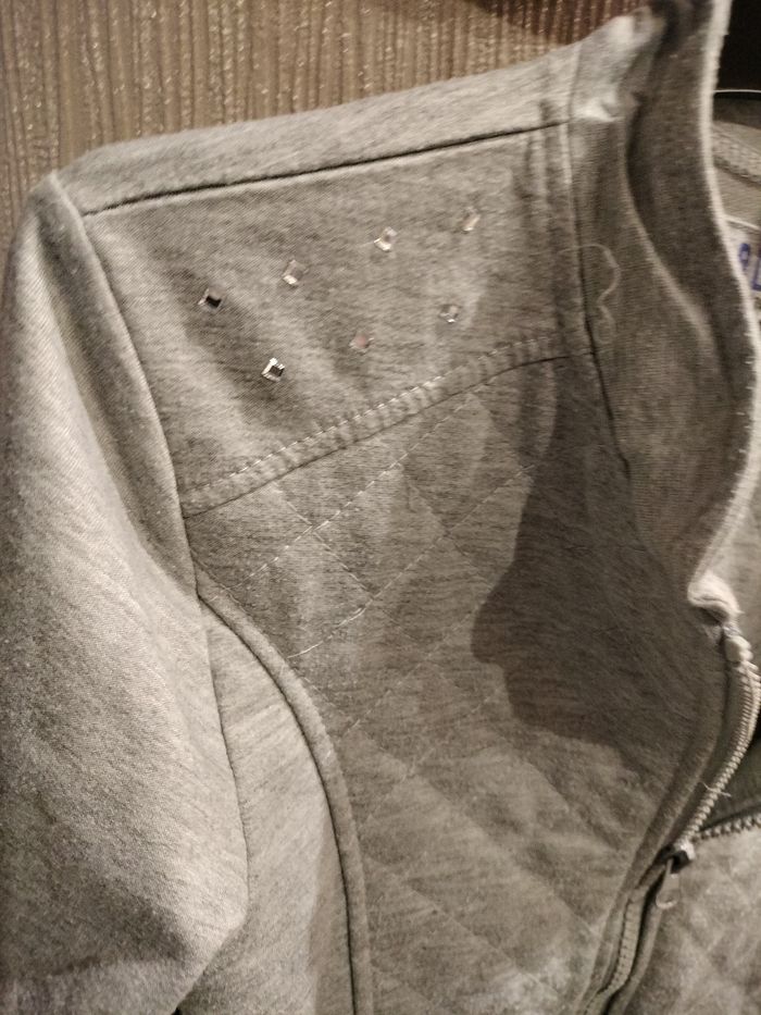 Veste/ gilet gris moucheté Fermeture éclair Strass sur les épaules Poches factices Un peu boulochée #ninierob59fille13ans #ninierob59fille14ans