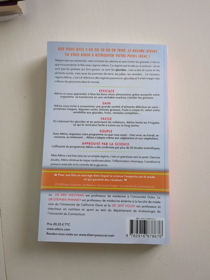 Dressing classé : Tous les livres ici ⬇️ #canals82_livres Auteur Dr Éric Westman Dr Stephan Phinney et Dr Jeff Volek Éditions Thierry Souccar Que vous ayez 5 kg 50 kg entre l'origine Atkins va vous aider à retrouver votre poids idéal ! Maigrir sans se restreindre , sans compter les calories et sans limite les graisses , c'est ce que vous propose le nouveau régime Atkins. Ce régime est fondée sur la science: ce ne sont pas les graisses qui font grossir , ce sont les glucides, c'est-à-dire le sucre et les aliments sucrés , mais aussi les pommes de terre , les pâtes , les céréales ... Le nouveau régime Atkins , c'est la référence des régimes pauvres en glucides et il a fait maigrir des millions de personnes dans le monde. Efficace , 5 , facile , souple , approuvé par la science