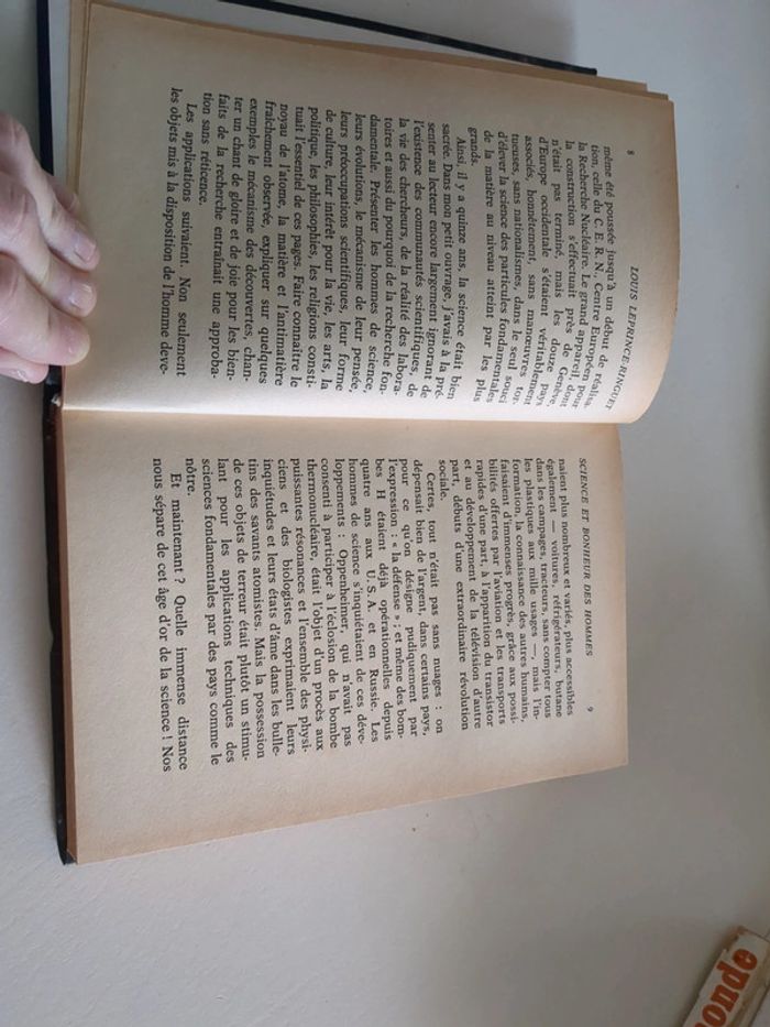 Science et Bonheur des Hommes Louis Leprince-Ringuet Ed Flammarion 1973 Ouvrage cartonné de 264 pages - Très Bon état Par lequel Louis Leprince-Ringuet, en visionnaire et homme de foi, pose les questions essentielles d'aujourd'hui en 4 Chapitres - Damnés en marche ou proposés au bonheur - La science fondamentale à l'origine des transformations - Mettre en question l'éducation - Où va le monde ? Comment bâtir notre bonheur ?