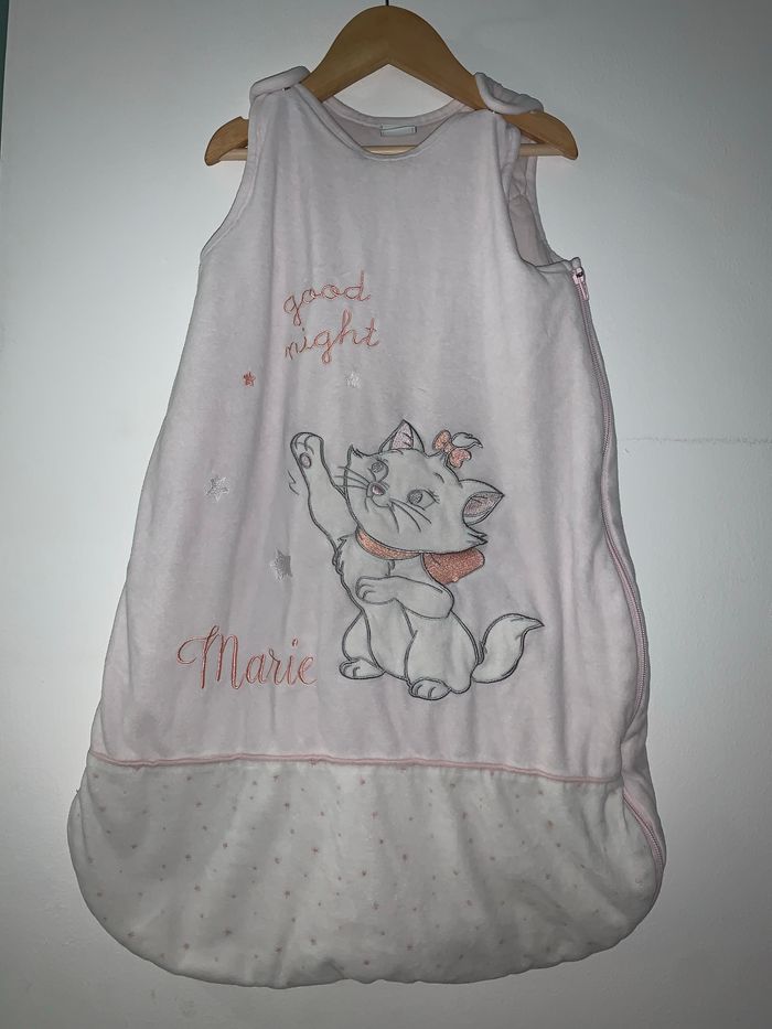 Jolie petite Gigoteuse disney aristochat En très bon état dans l’ensemble ( voir photo 3) Elle peut être réglable ( voir photo 5-6) Taille 6-24 mois Marque kiabi/disney