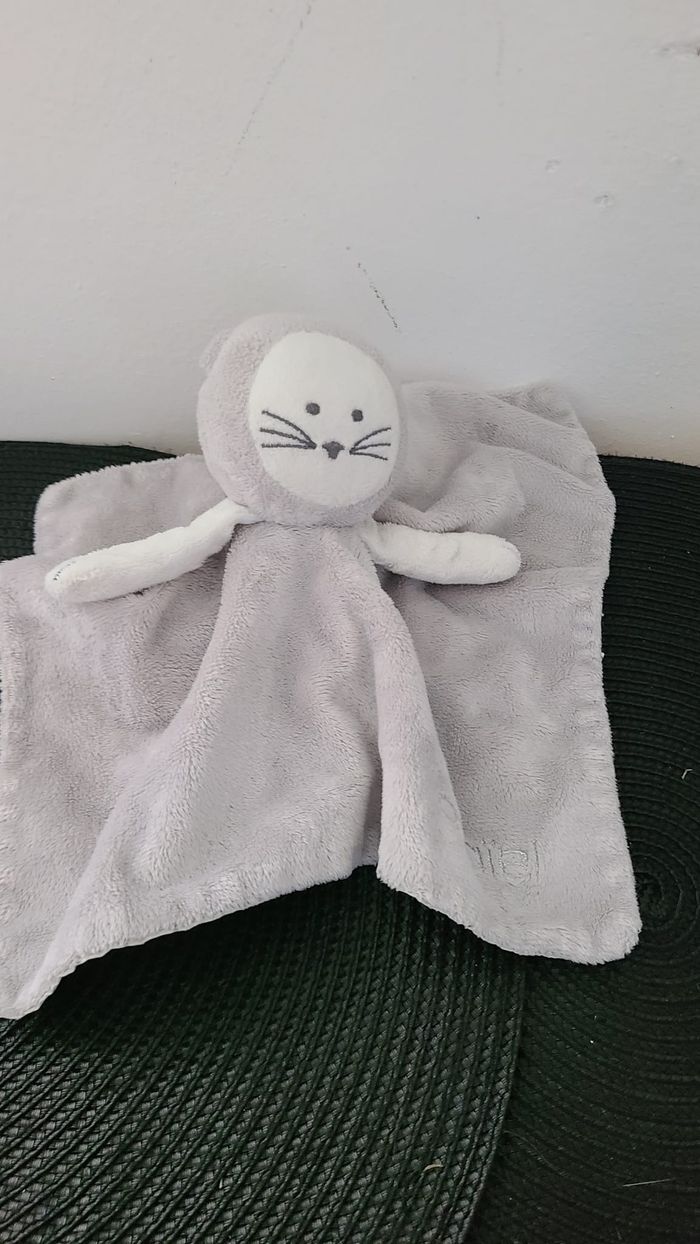 Obaibi doudou chat plat carré gris blanc