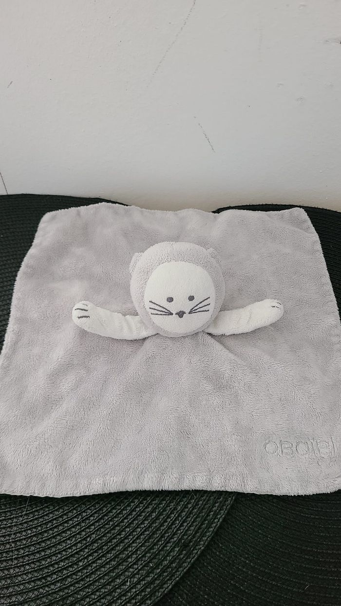 Obaibi doudou chat plat carré gris blanc - photo numéro 1