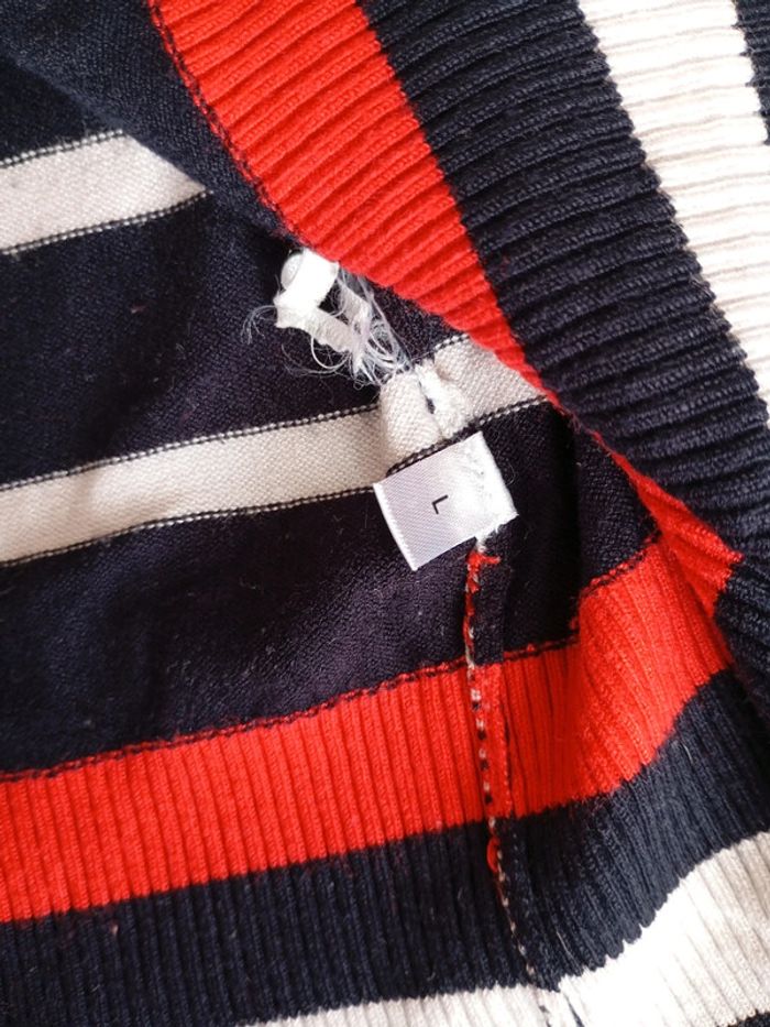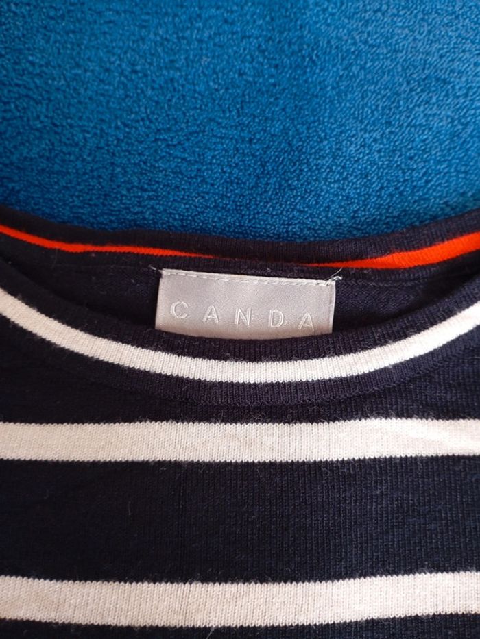Pull a rayures marque canda taille L mais taille assez grand je pense correspond au 44/46, voir dimension sur photo pas parfait mais propre sans trou noir tâches. Possibilité de faire des lots #adnolema_46 #adnolema_44
