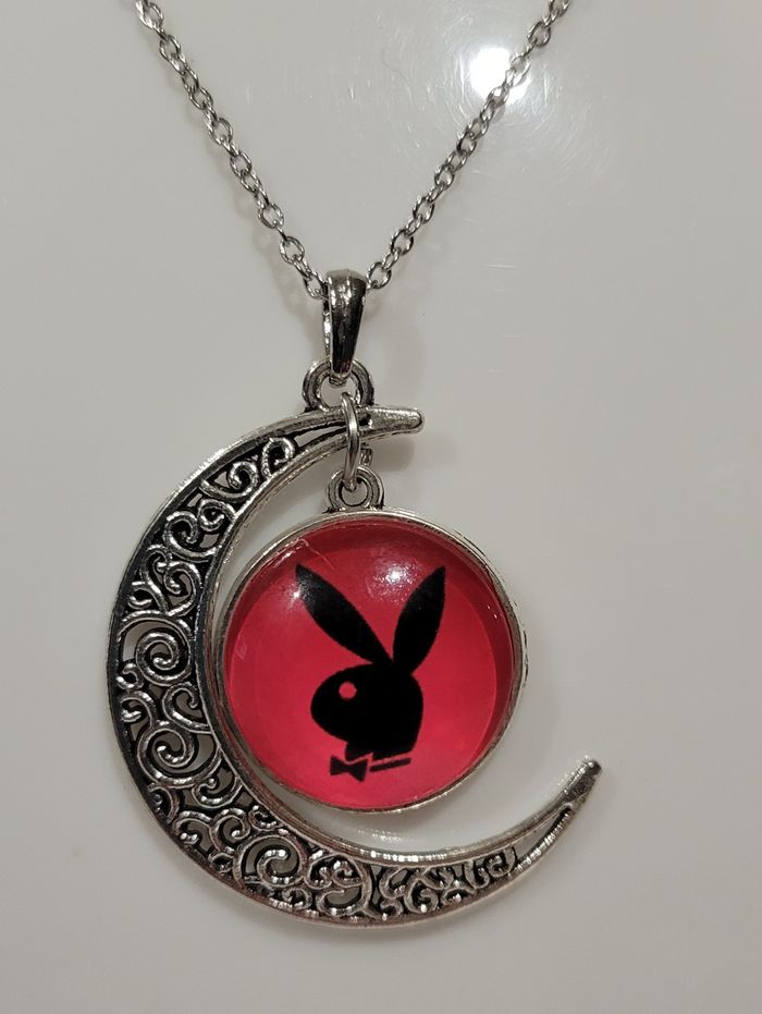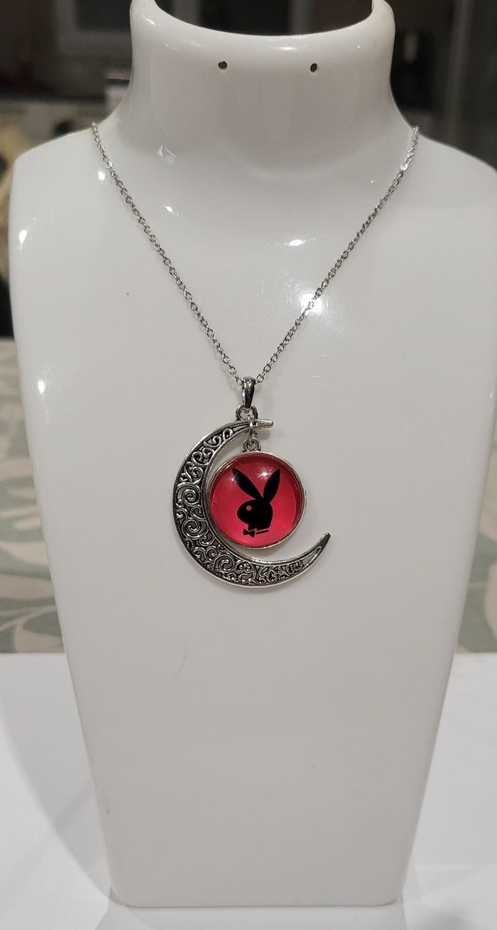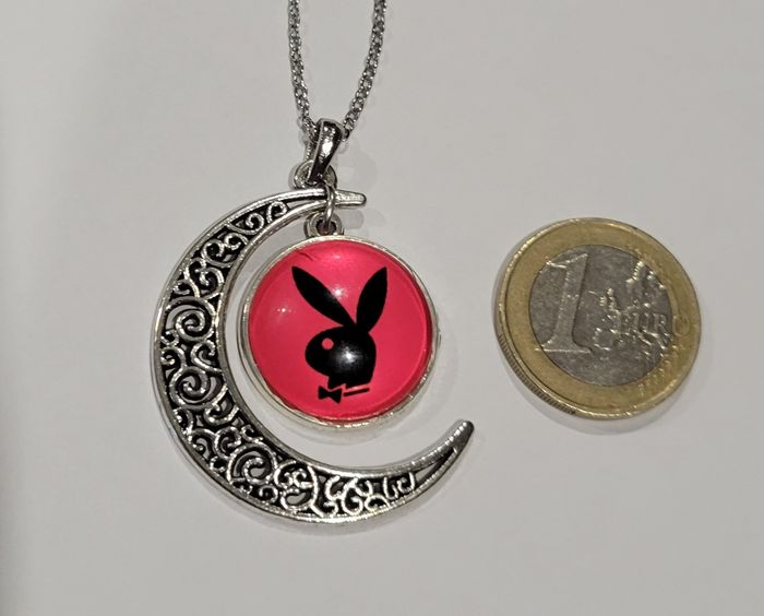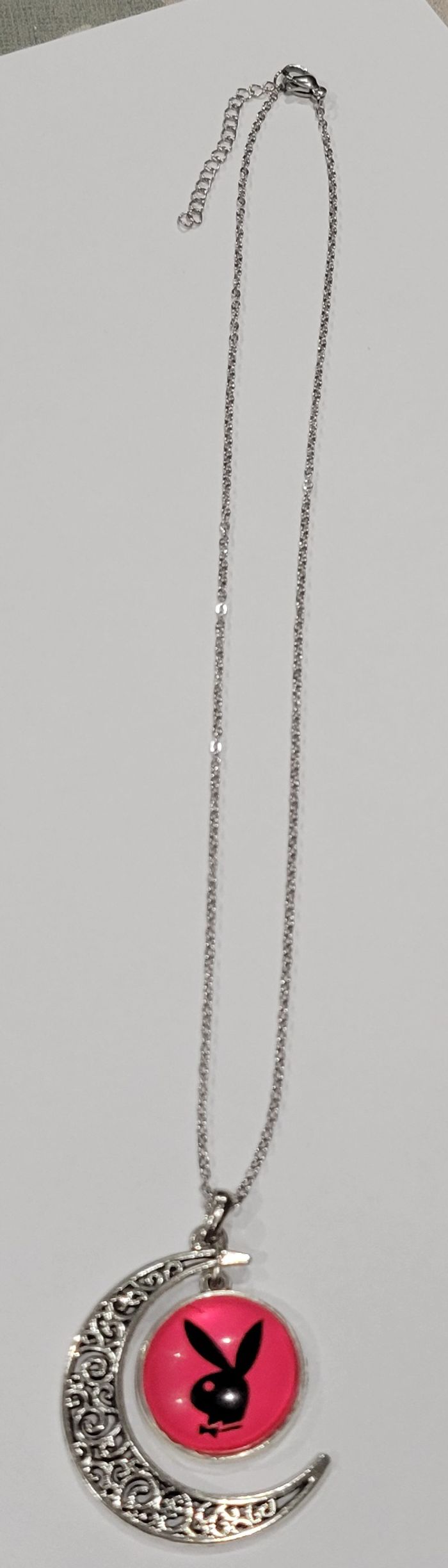COLLIER LUNE PLAYBOY ARGENTE ROSE ! NEUF !