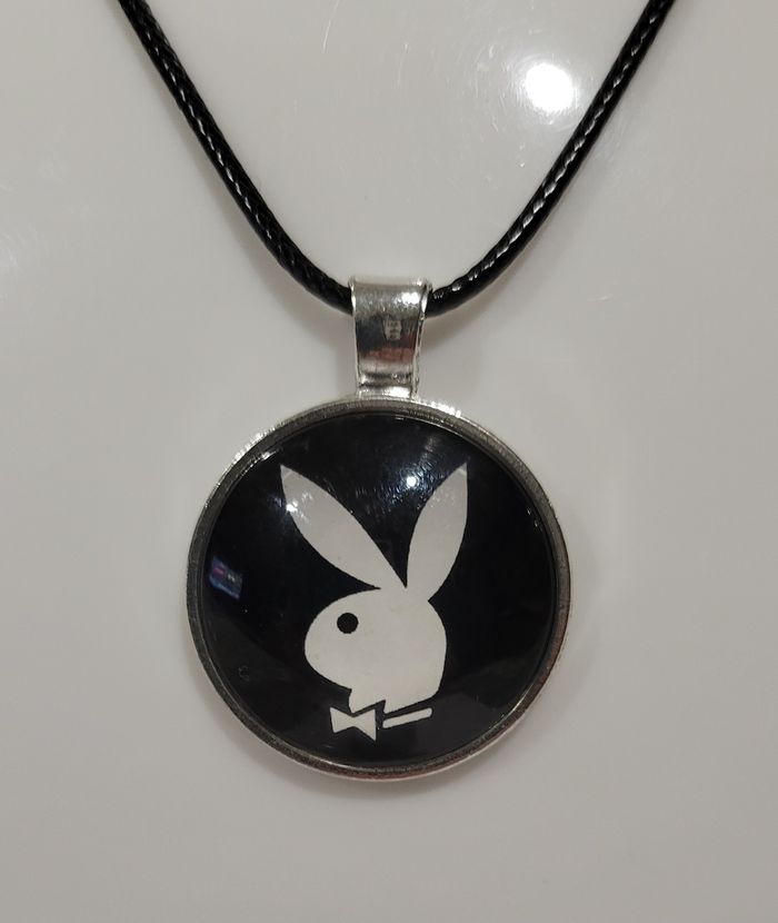 COLLIER CORDELETTE PLAYBOY NOIR BLANC ! NEUF ! Longueur de la cordelette: 45 cms. ( + 5 cms de chainette ajustable) Diametre du pendentif : 2,8 cms . N'hésitez pas à regarder mes autres ventes. Envoi rapide et soigné.