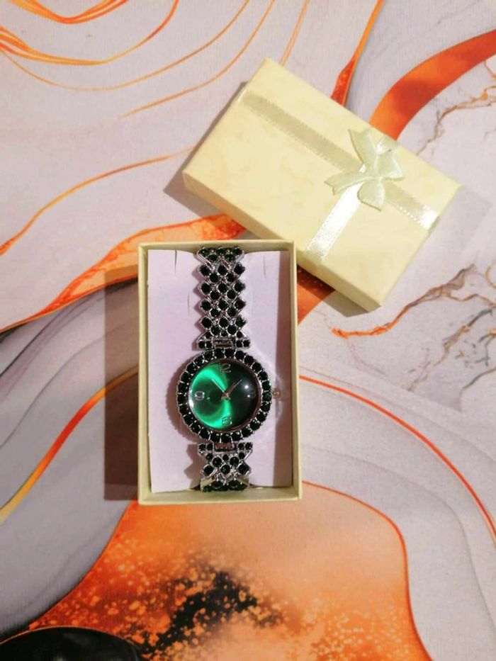 Montre Couleur vert émeraude et argenté Taille 20 cm Neuf dans boîte cadeau