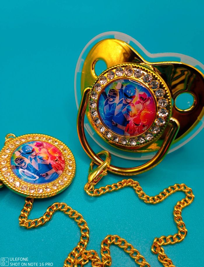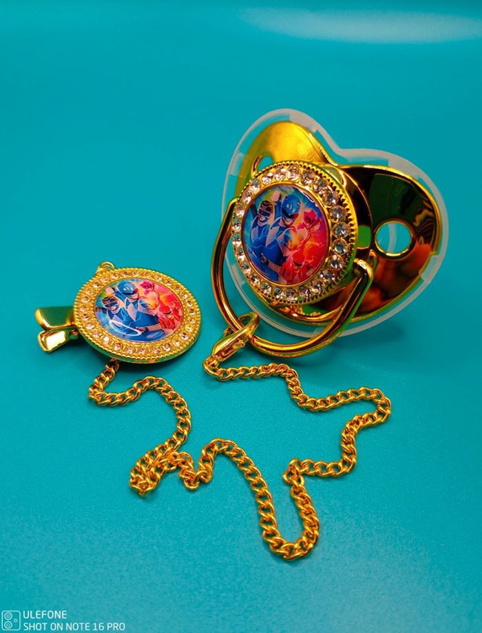 Tétine strass avec attache Couleur OR Protection tétine inclus Tétine 100% Silicone, Sans BPA. Tétine orthodontique, taille unique. Neuf emballé