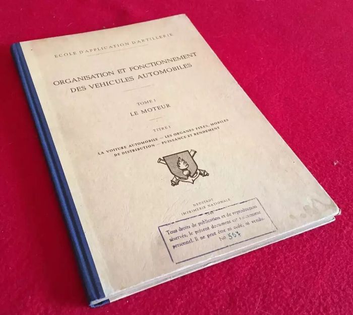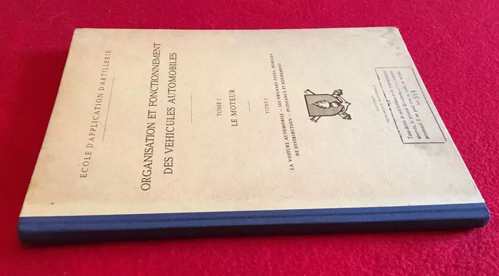 Ecole d' Application d' Artillerie Organisation et Fonctionnement des Véhicules Automobiles (1948) Tome I Le Moteur La voiture automobile, les organes fixes, mobiles de distribution, puissance et rendement Illustrations dans le texte N°567 Imprimerie Nationale Neustadt (300x215)mm