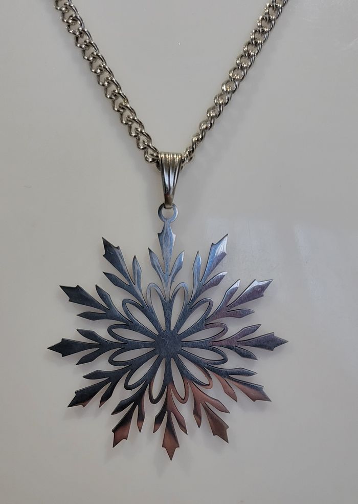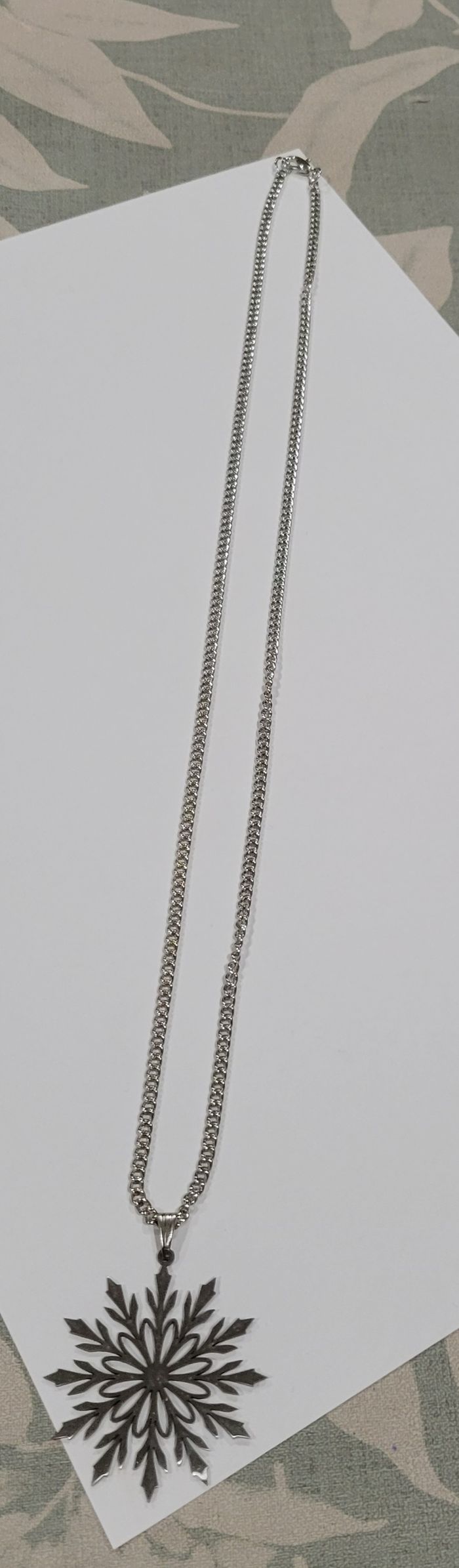 COLLIER GRAND FLOCON DE NEIGE ARGENTE ! NEUF ! - photo numéro 1