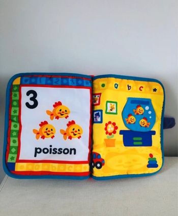Achat aujourd’hui ? 👉🏻 Départ du 📦 demain ! Livre premier âge bébé en tissu Éveil et jeu Ce grand livre d'éveil intéractif avec ses pages en tissu encourage le jeu entre papa /maman et bébé. Il propose de nombreuses surprises et plein de textures différentes à découvrir. Bébé va connaitre sa première initiation aux chiffres puisque chaque page porte un numéro et une image avec le nombre d'objets correspondants (sur la page 3 sont dessinés 3 petits canards par exemple). Papa/Maman peuvent actionner un bouton sur la reliure du livre pour déclencher 1 chanson, 3 mélodies ou 2 effets sonores. Marque: Fisher price Excellent état Retrouvez tous les Jouets et jeux que je vends: #jouetjeumg