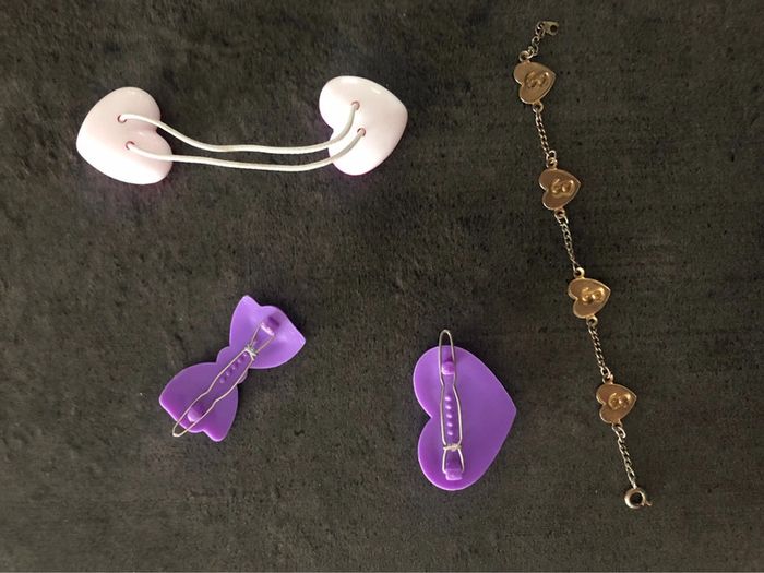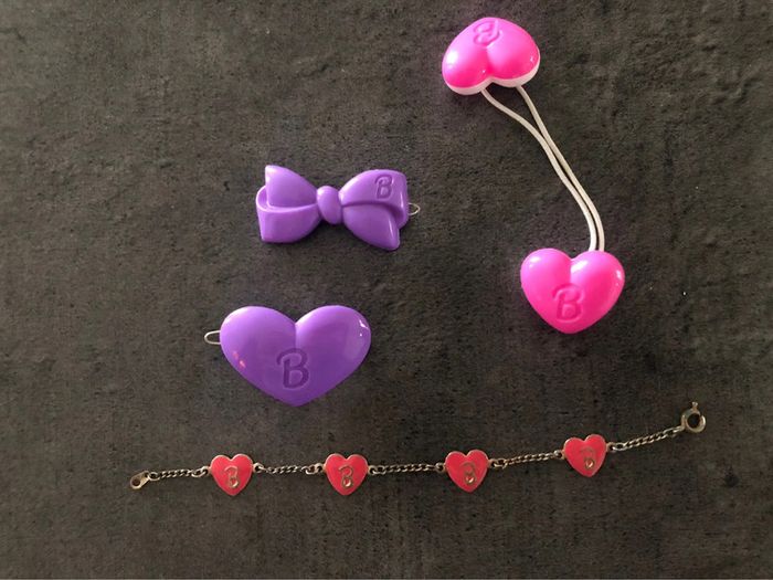 Achat aujourd’hui ? 👉🏻 Départ du 📦 demain ! Accessoires barbie élastique barrette bracelet Élastique cheveux Bracelet métal 2 Barrettes Vintage - article barbie de mattel petite fille des années 90 - rétro - souvenir d’enfance - hair - coiffure Retrouvez tous les produits barbie que je vends : #barbiemg Retrouvez tous les accessoires enfant-bébé que je vends: #accessmg