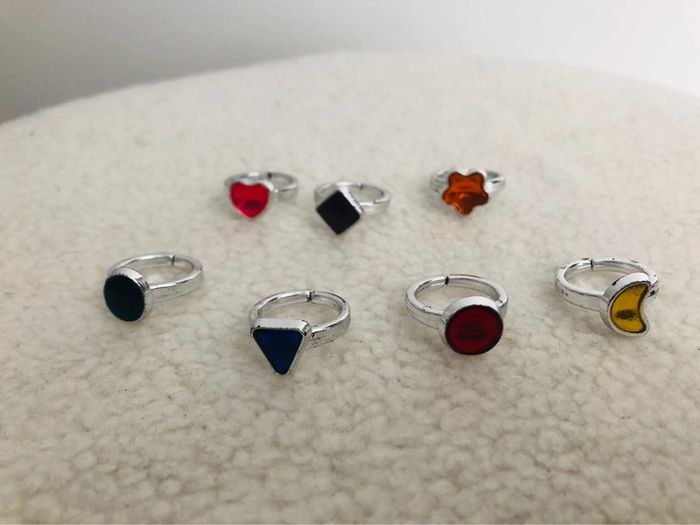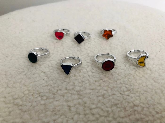 Achat aujourd’hui ? 👉🏻 Départ du 📦 demain ! Lot de 7 bagues fantaisie légères Fleur, lune, coeur, triangle , etc… Bijou fantaisie