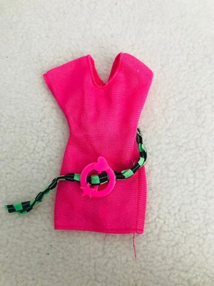 Achat aujourd’hui ? 👉🏻 Départ du 📦 demain ! Robe pour poupée mannequin barbie Vintage Années 90 Avec ceinture Rose et vert Retrouvez tous les produits barbie que je vends : #barbiemg