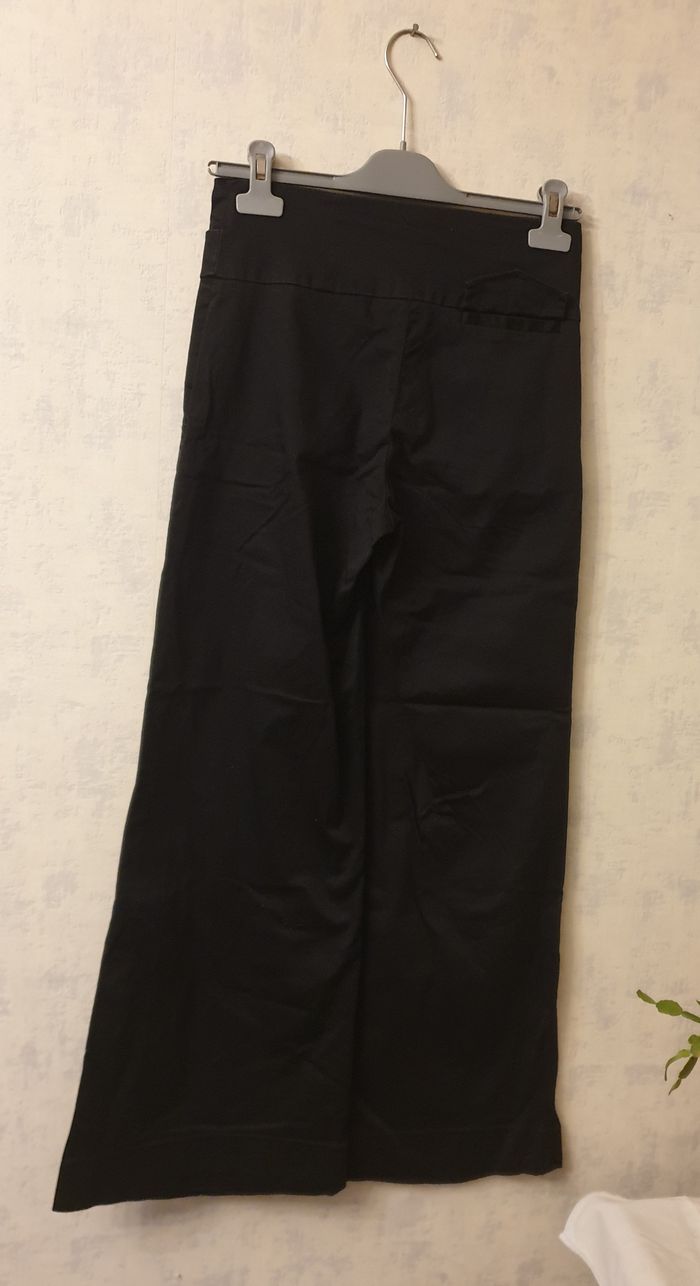 Pantalon noir à jambes larges, en très bon état. Usure normale d’utilisation. 2 poches avant ouvertes 1 poche arrière avec rabat. Kookaï T 34 97 % coton – 3 % élasthanne Les mesures prises à plat, sont données à titre indicatif et peuvent varier de quelques millimètres. - Largeur taille : 34 cm - Longueur : 101 cm - Longueur entrejambe : 75 cm - Largeur bas des jambes : 31 cm Envoi rapide et soigné