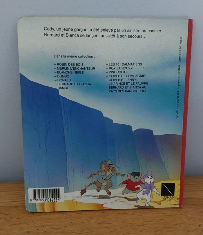 Bernard et Bianca au pays des kangourous Livre cartonné de 1991 Walt Disney- Éditions Nathan Très bon état