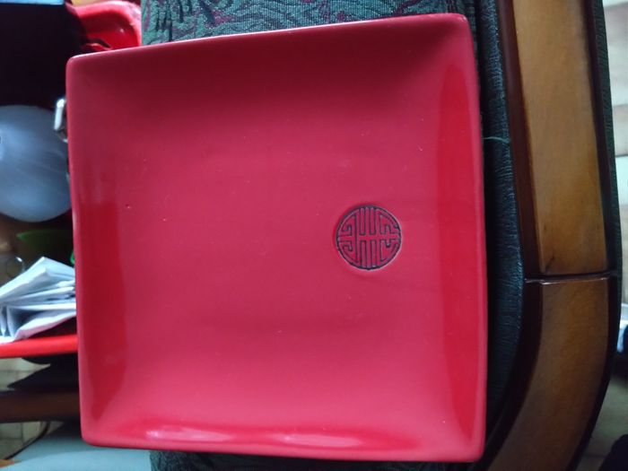 Petit Plat/Assiette carrée Matière: Céramique Couleur: Rouge et Noir Forme: Carré Dimensions: 18cm de côté Petite contenance OK lave-vaisselle et OK micro-ondes En bon état, ni fêlé ni ébréché (Vendu comme sur les photos)