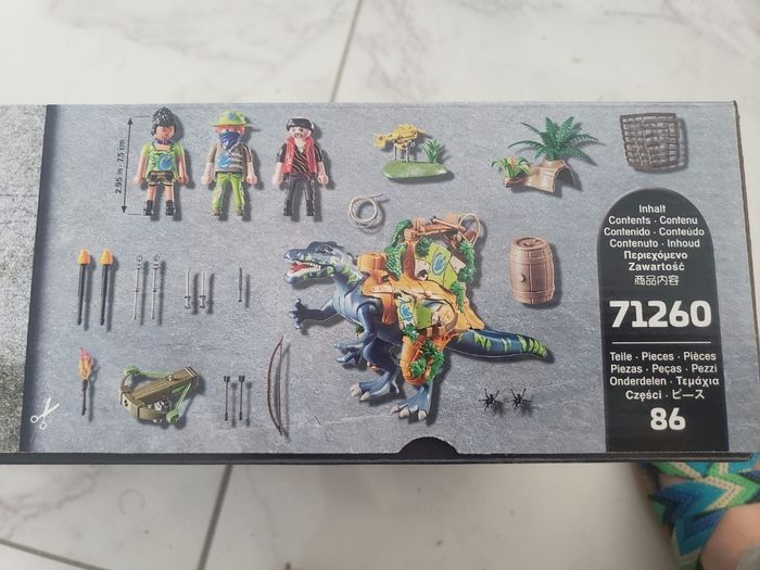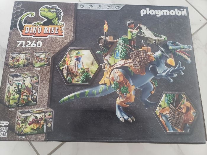 Sur la carapace dorsale du dino, il y a une place assise et une place debout. Le canon à projectiles de feu peut être tourné et pivoté. Deux projectiles à flamme sont aussi inclus
