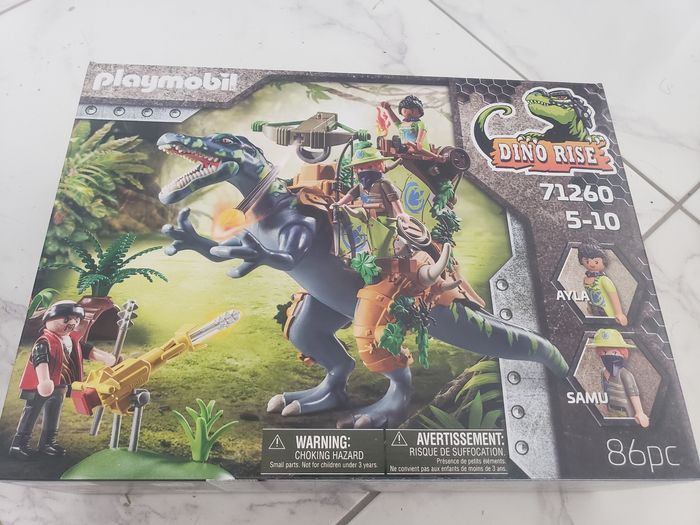 Avec leur Spinosaure parfaitement équipé, Ayla et Samu incarnent la double force de défense. Le trio relève courageusement tous les défis