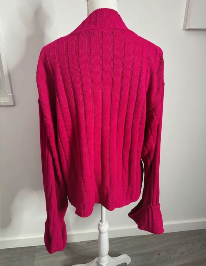 Pull oversize en maille côtelée rose fuchsia Vintage T48 4XL - photo numéro 6