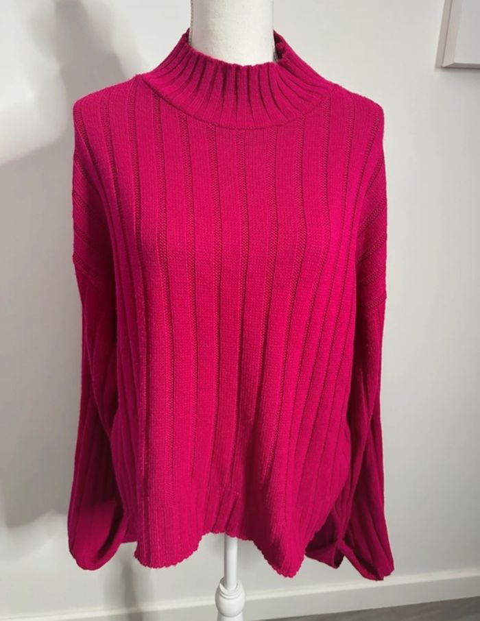 Pull oversize en maille côtelée rose fuchsia Vintage T48 4XL