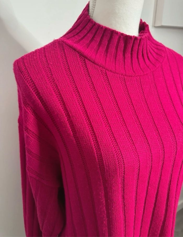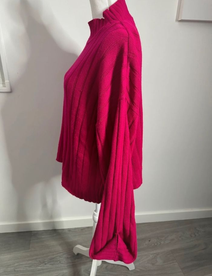 Pull oversize en maille côtelée rose fuchsia Vintage T48 4XL - photo numéro 3