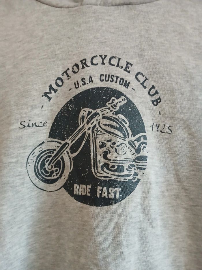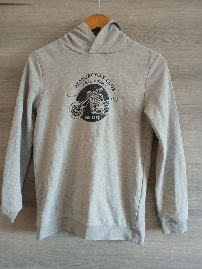 Sweat gris à capuche imprimé motorcycle Taille 12 ans
