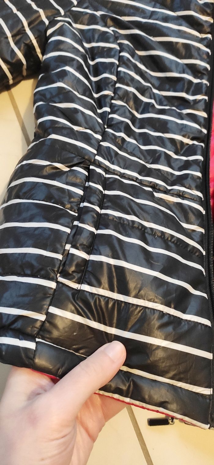Manteau chaud pour l'hiver, noir à rayures. Très doux et imperméable. Léger.