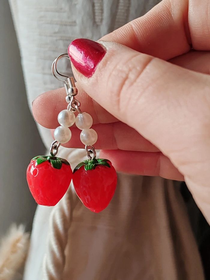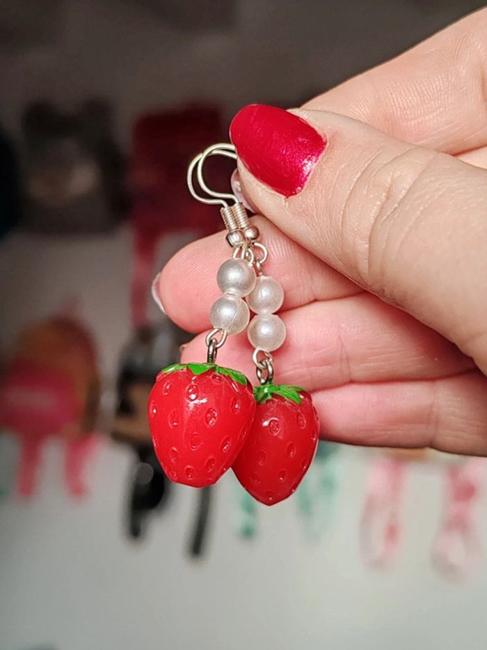 Boucles d'oreilles fraises kawaii - photo numéro 2
